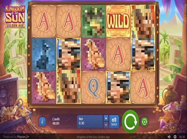 Kingdom of The Sun: Golden Age game was released on the 27th of February 2018 by Playson. This is a medium volatility video slot with an RTP of 95.29%. The theme here is of ancient Egypt, and you can begin to spin the reels from as low as 30p to £105. In terms of the reel structure in this slot online UK game, there are 5 reels and 15 paylines. If you feel lucky, you could grab the potential max win of 500 coins.